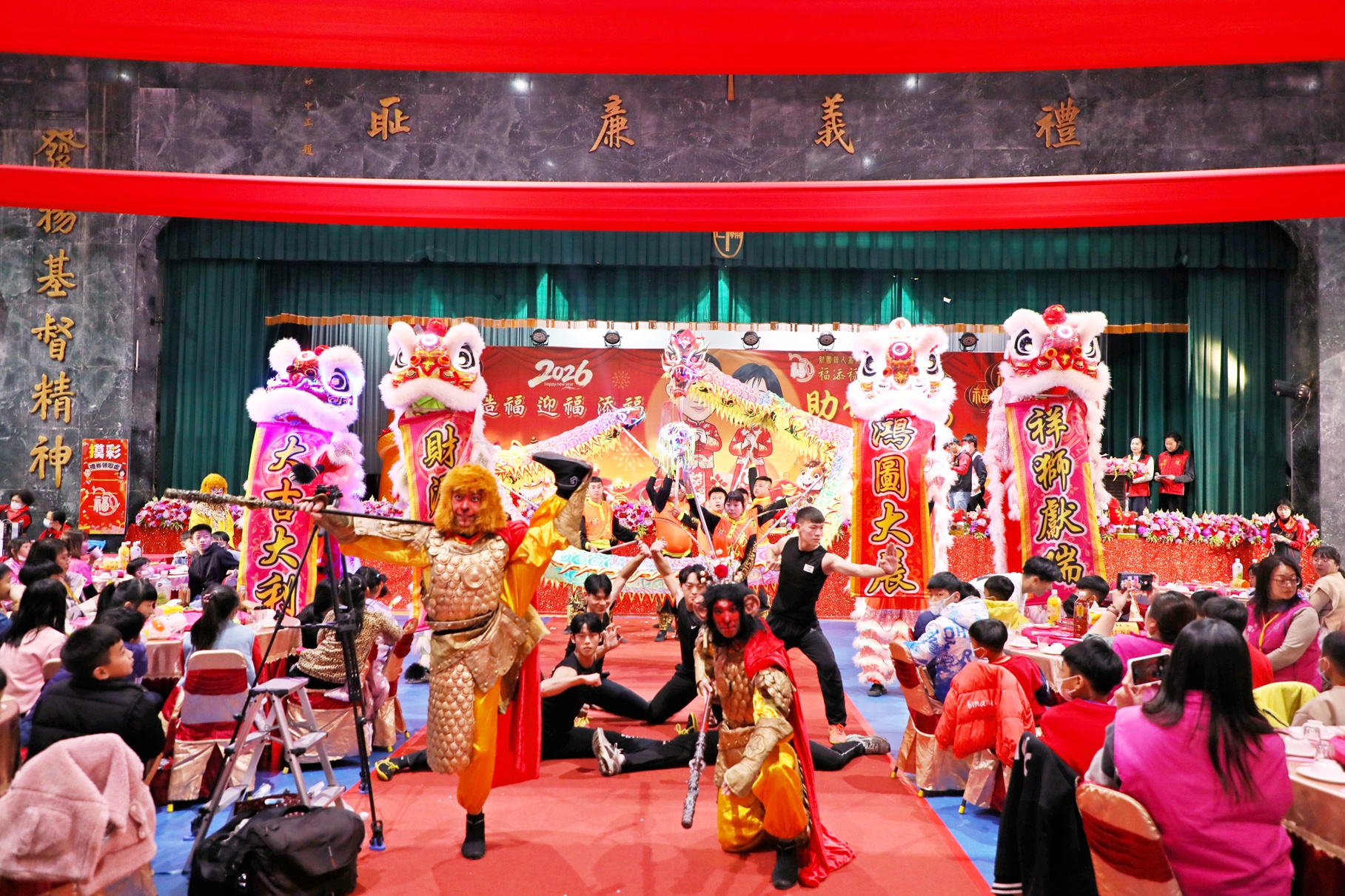 圍爐餐會中除表揚扶助戶代表外,也邀請海洋家族親子唱跳、撼動H.D.A.帶來精彩且豐富的表演節目,場外安排晨光咖啡;嘉義市腦性麻痺協會烘焙小點;麗美整體造型莎麗造型師現場義剪;氣球達人現場製作造型氣球…等,使得現場氣氛更加熱鬧,洋溢著滿滿的歡樂氣息與祝福。