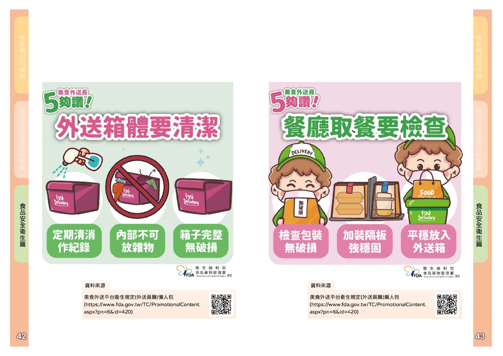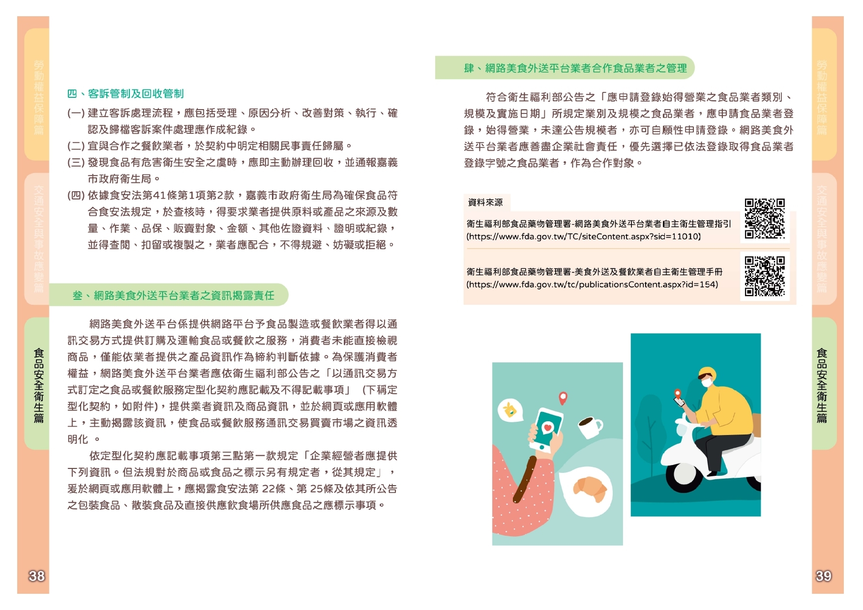 - 食品安全衛生-掌握平台業者自主衛生管理、掌握外送員遵守原則