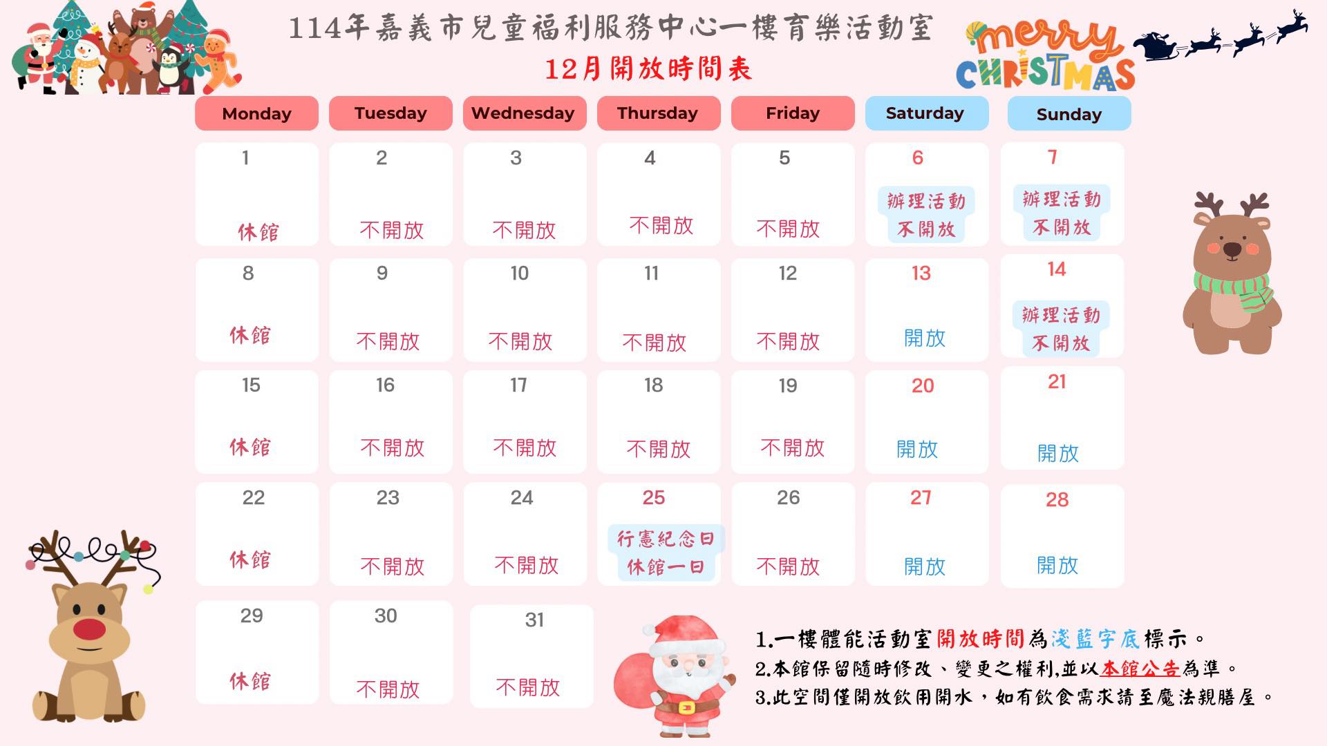 一樓育樂活動室 114年 #12月開放時間 出來囉 ~~